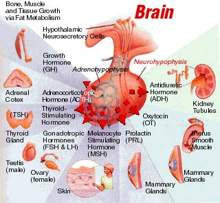 in the pituitary gland; and enkephalins and up to